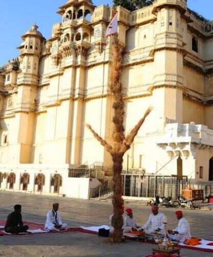 सिटी पैलेस में मंत्रोच्चार के साथ हुआ होलिका रोपण