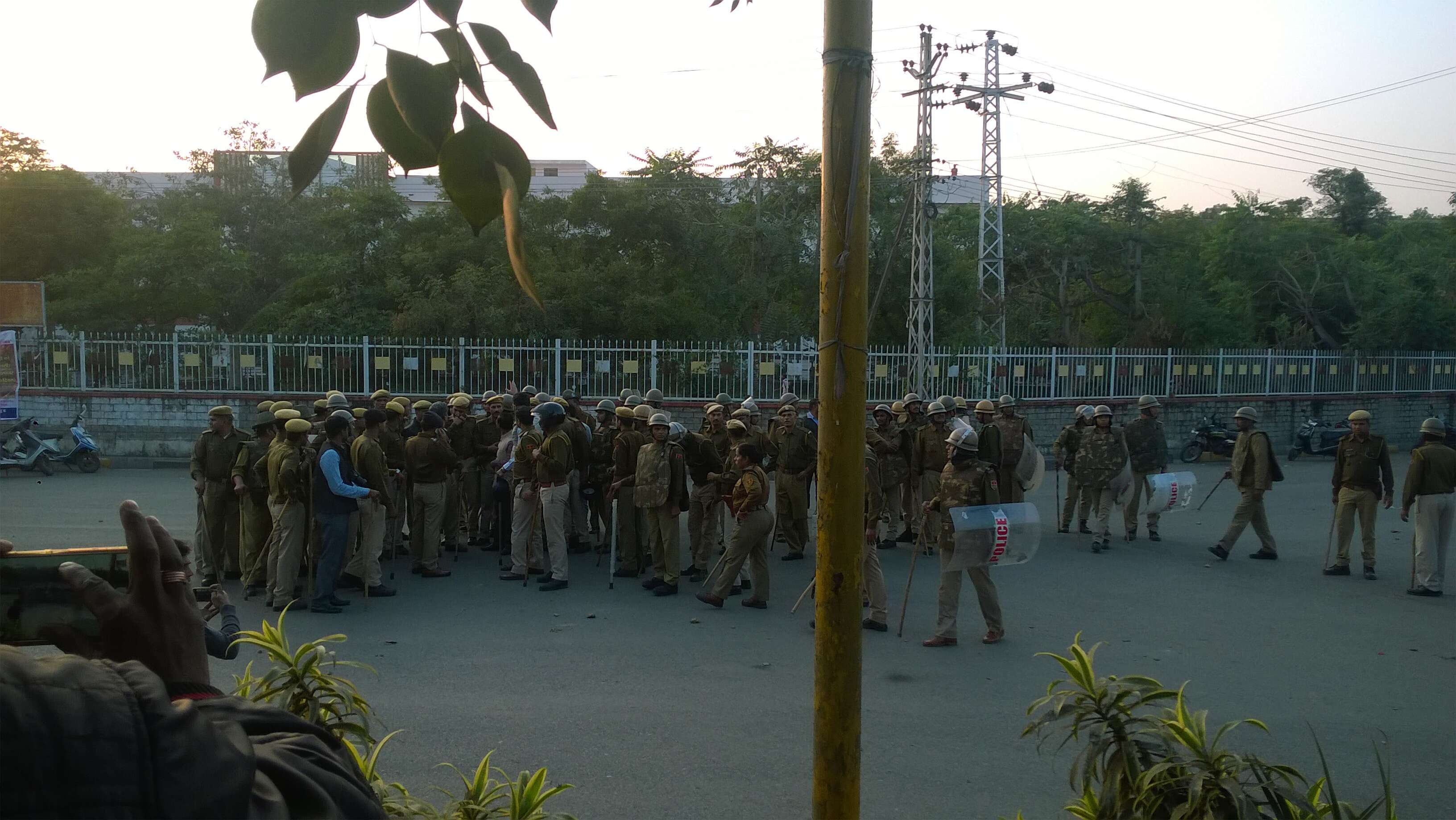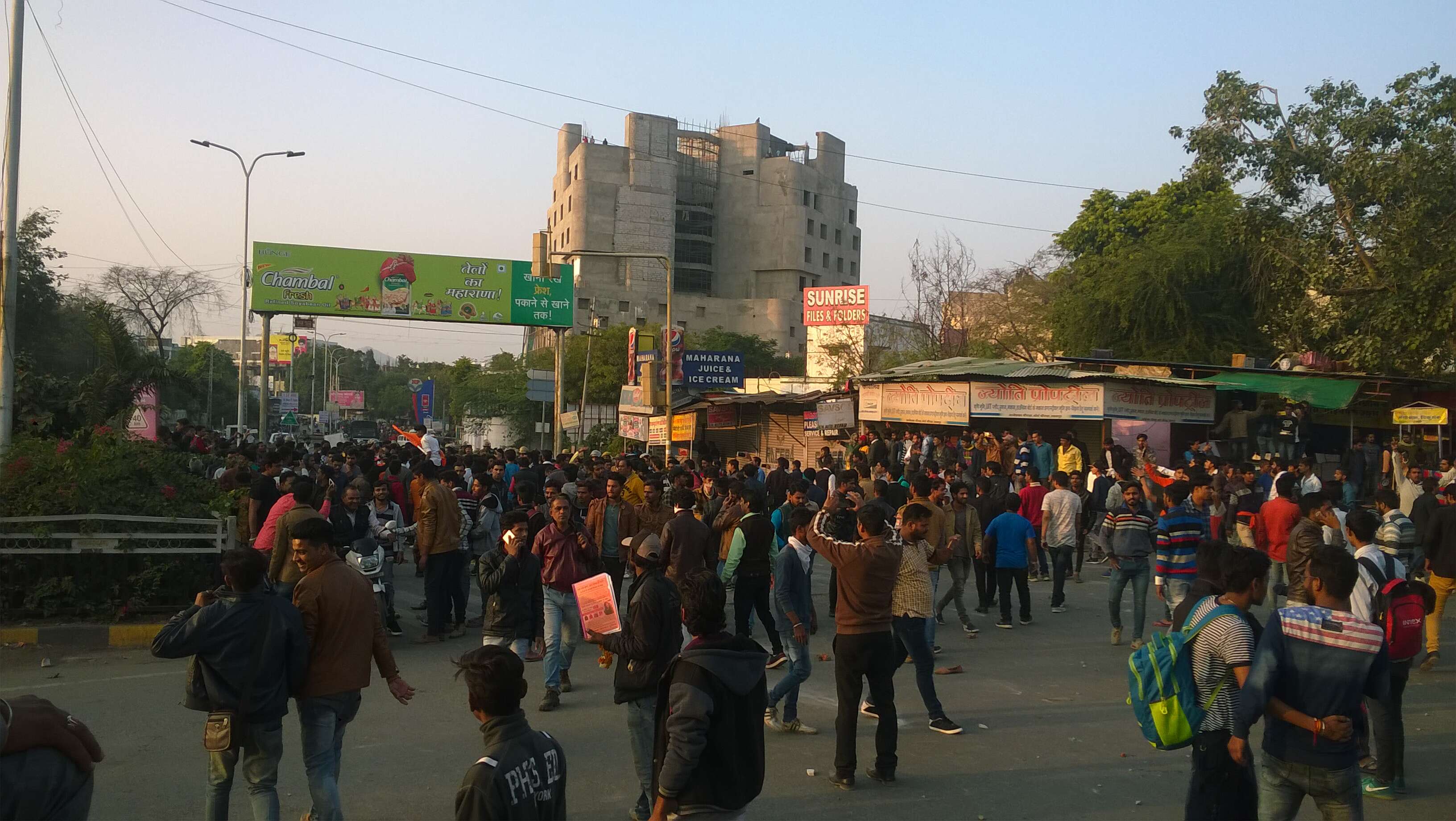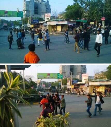 शहर में मुख्य चौराहे चेतक सर्कल पर दोपहर 3.32 बजे सैकड़ों आक्रोशित युवा एमबी हॉस्पिटल की ओर बढ़े। भीड़ के बीच से युवाओं ने पुलिस पर पत्थर बरसाए। भीड़ ने चेतक सर्कल पर कब्जा कर लिया। एसपी गोयल, आईजी श्रीवास्तव, कलेक्टर मल्लिक के पहुंचते ही पुलिस उग्र हो गई और भीड़ पर लाठियां बरसाईं गई।