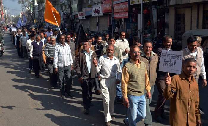 हाथो में कला झंडा लिए जैन धर्मावलम्बियों ने टाउन हॉल से एक विशाल रैली निकली जो शहर की विभिन्न क्षेत्रो से होते हुए कलेक्ट्री पर पहुची और धरना दिया गया। समाज का प्रतिनिधित्व करते हुए कई लोगो ने उद्बोधन दिया और सरकार से न्याय की मांग की।