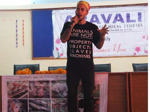 जानवरों के अधिकारों के लिए आंदोलनरत विश्व विख्यात आस्ट्रेलियाई श्री जेम्स एस्पे उदयपुर के महाविद्यालय परिसरों में विद्यार्थियों से रूबरू हुए। विश्व भर में निरवद्यता (विगनिज्म) के प्रचार-प्रसार का बीड़ा उठाए जेम्स एस्पे का अरावली इंस्टिट्यूट एवं टेक्नो इंडिया एन.जे.आर. इंस्टिट्यूट के विद्यार्थियों ने पूरे उत्साह से स्वागत किया।