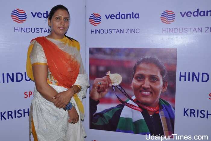 दिल्ली राष्ट्रमडंल खेलों में डिस्कस थ्रो जितने वाली पहली भारतीय महिला एथलीट कृष्णा पुनिया आज उदयपुर पहुंची।