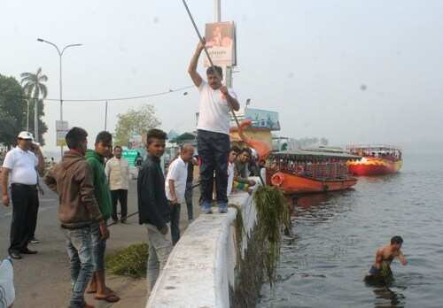 झीलों की नगरी में लहरों पर रोमांच के साथ आज से दो दिवसीय लेक फेस्टिवल का आगाज़ हुआ। कार्यक्रम के तहत सुबह सवेरे 6:30 पर पक्षी प्रेमियों ने बर्ड वाचिंग की। वही नगर निगम के नेतृत्व में निगम के अधिकारी एवं प्रशासनिक अधिकारियो द्वारा फतेहसागर झील में श्रमदान किया गया। झील श्रमदान में बैंक ऑफ़ बड़ौदा के क्षेत्रीय प्रबंधक ने अपने अधिकारियो और कर्मचारियों के साथ मिलकर योगदान दिया।लेक फेस्टिवल के पहले दिन सुबह 11:30 बजे फतेहसागर की