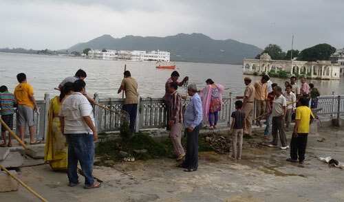 झील मित्र संस्थान. झील संरक्षण समिति व डॉ मोहन सिंह मेहता मेमोरियल ट्रस्ट द्वारा गणगोर घाट पर आयोजित श्रमदान में पिछोला झील क्षेत्र से जलीय घास, शराब की खाली बोतले , प्लास्टिक,पोलिथिन,थर्मोकोल सहित मरी हुई मछलिया बहार निकाली। श्रमदान में रमेश चन्द्र राजपूत,रामलाल नकवाल,दुर्गाशंकर पुरोहित,डॉ दीपक गुप्ता,हरीश पुरोहित,अम्बालाल गुसार,ललित पुरोहित,भावेश,ज्योति गुप्ता, तेज शकर पालीवाल, डॉ अनिल मेहता ,नंदकिशोर शर्मा सहित कई नागरिको ने भाग लिया।