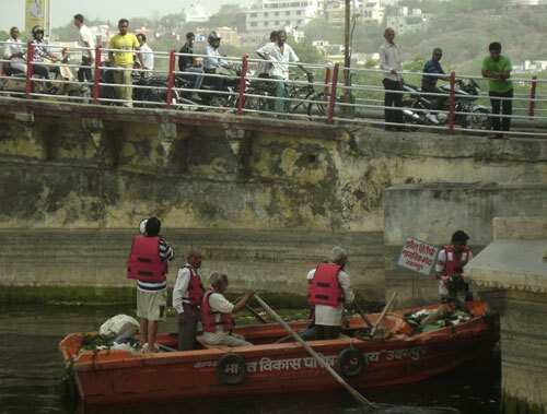साथ ही 25 पानी व शराब की खाली बोतले निकाली। मंच के हाजी सरदार मोहम्मद ने चांदपोल पुलियापर आने जाने वाले लोगों को माईक द्वारा झीलों के पानी का महत्व समझाते हुवे इन्हें स्वच्छ रखने बाबत जागरूक किया।