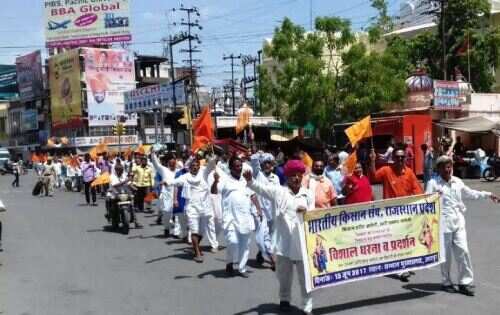 भारतीय किसान संघ, राजस्थान प्रदेश की और से आज प्रातः 10 बजे विशाल रैली का आयोजन किया गया जिसमे प्रतापगढ़, चित्तोडगढ एवं उदयपुर की तहसील गिर्वा एवं बडगांव के 1000 किसानो ने भाग लिया। किसान काफी जोश से किसान संघ के नारे लगते हुए आगे बढ़ रहे थे किसानो में सरकार के प्रति काफी आक्रोश था रैली टाउन हॉल से शुरू हुई तथा देहलीगेट, हाथीपोल, चेतक सर्किल से होते हुए संभागीय आयुक्त के ऑफिस पहुची| जहाँ किसान संघ के प्रतिनिधियों ने संभागीय आयुक्त को ज्ञापन सौंपा | किसानो द्वारा ज्ञापन सौपने के पश्चात् मोहता पार्क के पास अनिश्चितकालीन महापडाव डाला गया