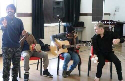 मेटा जिंगल के कलाकारो ने रोकवूडस हाई स्कूल में संगीत और जगलिंग का कार्यक्रम