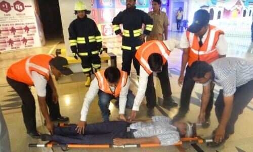 सेलिब्रेशन मॉल में फायर सेफ्टी पर मॉक ड्रील