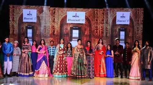 समारोह में सबसे पहले ब्ल्यू रनवे में विद्यार्थियां द्वारा डेनिम फेब्रिक्स से बनाये गये गाउन और फंकी लुक का वेर्स्टन गारमेंट्स के साथ आकर्षक इस्तेमाल किया। ग्रेफिटी राउण्ड में खास तौर पर भारतीय मधुबनी, कलमकारी, ब्लॉक प्रिंटिंग का उपयोग किया जिसमें अलग-अलग राज्यों की खडी प्रिंट को शामिल किया गया था। इकत और ट्राइबल प्रिंट्स के साथ चटक रंगां का समावेश फैशन प्रेमियों को लुभा गया।
