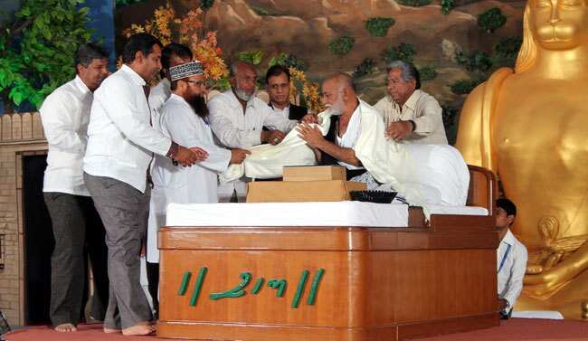 व्यासपीठ पर बुधवार को गंगा जमुनी तहजीब की संस्कृति दिखी। शहर के मुस्लिम समुदाय के अंजुमन मिल्लते इस्लामिया संस्थान के सदर अब्दुल गनी शेख, हाजी मोहम्मद इस्माईल, असरा वेलफेयर सोसायटी के मौलाना मोहम्मद सिदृीकी नूरी, गुलाम जिलानी आदि ने व्यासपीठ के समक्ष आकर मुरारी बापू का शाल ओढाकर इस्तकबाल किया। बापू ने उन्हे बधाई व शाल प्रदान किया।