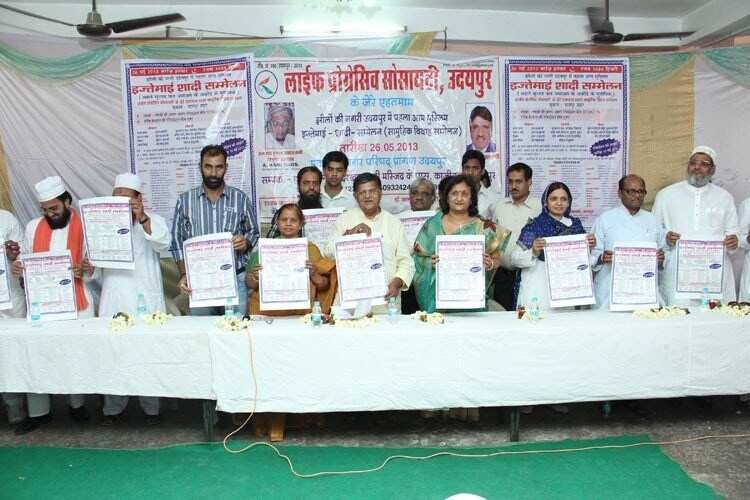 लाइफ प्रोग्रसिव सोसायटी द्वारा आगामी 26 मई को नगर परिषद प्रागंण में आयोजित होने वाले प्रथम सर्व मुस्लिम समुदाय के इज्तेमिया सामूहिक विवाह के पोस्टर का आज काजीवाड़ा में आयोजित एक समारोह में विमोचन किया गया।