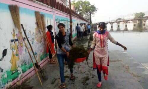 नेहरू युवा केंद्र कार्यकर्ताओ ने की झील सफाई
