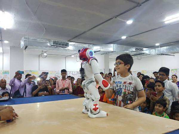 हुमनोइड रोबोट टेक्नो एन जे आर नाओ ने आज हाथीपोल स्थित अरवाना में बच्चो और उनके अभिभावकों के सामने प्रदर्शन कर उनका मन मोह लिया।