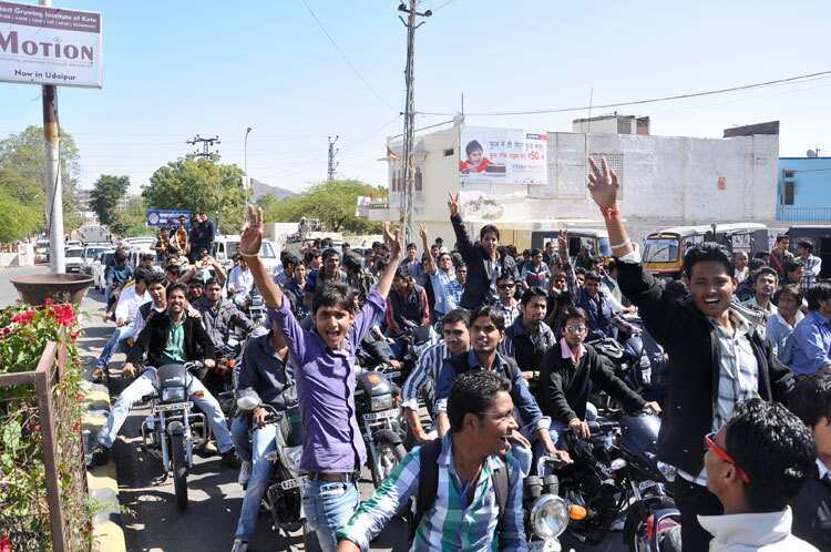 इस जुलुस की शुरुआत मोहनलाल सुखाडिया विश्वविद्यालय से शुरू हुई जो अशोक नगर, कोर्ट चोराहे, देहलीगेट होते हुए टाउन हॉल पर खत्म हुई।