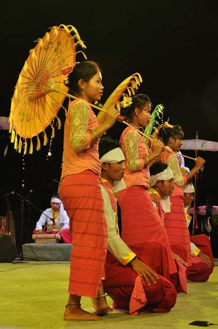 पहले अरूणाचल प्रदेश की गालों जाति का इरैप नृत्य आया जिसमें वहां की वैवाहिक परंपरा को दर्शाया गया। इसके बाद आठ प्रांतों के सुरीले संगीत की लय पर वहां के पारंपरिक परिधानों को अनूठे अंदाज में दर्शाया गया। कार्यक्रम में मणिपुर का स्टिक डांस दर्शकों के लिये हैरत कारी रहा। लोक वाद्यों की थाप पर कलाकारों ने स्टिक से संतुलन कर विभिन्न करतब दिखाये।