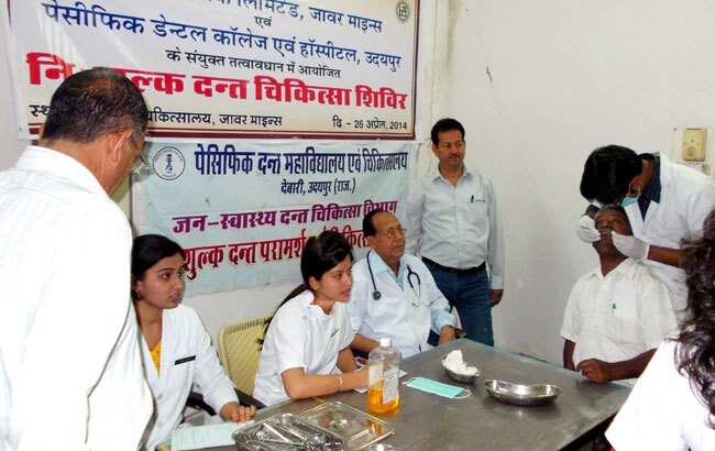 आज हिन्दुस्तान जिंक जावरमाइन्स एवं पेसीफीक डेन्टल कॉलेज उदयपुर के संयुक्त तत्वावधान में स्थानीय केन्द्रीय चिकित्सालय में एक निःशुल्क दन्त चिकित्सा शिविर का आयोजन किया गया।