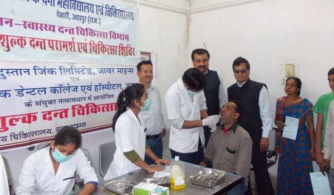 हिन्दुस्तान जिंक जावरमाइन्स एवं पेसिफिक डेन्टल कॉलेज उदयपुर के संयुक्त तत्वावधान में स्थानीय केन्द्रीय चिकित्सालय में एक निःशुल्क दन्त चिकित्सा शिविर का आयोजन किया गया।