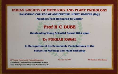 यह सम्मान भारतीय कवक विज्ञान और प्लांट पैथोलॉजी सोसायटी द्वारा आयोजित 36 वें वार्षिक सम्मेलन और राष्ट्रीय संगोष्ठी में कृषि कॉलेज और रिसर्च इंस्टिट्यूटए मदुरैए तमिलनाडु कृषि विश्वविद्यालयए कोयम्बटूर ;तमिलनाडुद्ध में प्रदान किया गया।