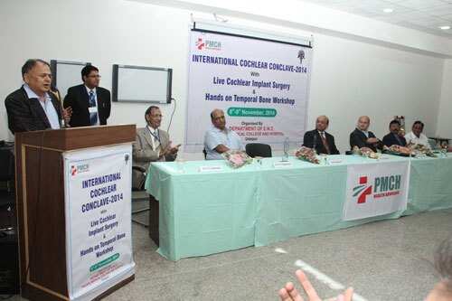 पीएमसीएच के ईएनटी विभाग के हैड एवं कॉफ्रेस के चैयरमैन डॉं पी.सी.अजमेरा ने बताया कि कॉकलियर इम्प्लांट पर इस अन्तराष्टीय सेेमिनार में प्रथम ऑपरेशन महेशाश्रम संस्थान की 10 माह की मुस्कान का किया गया। इस कार्यषाला में देश दुनिया से लगभग 60 से ज्यादा ईएनटी सर्जनो ने भाग लिया।