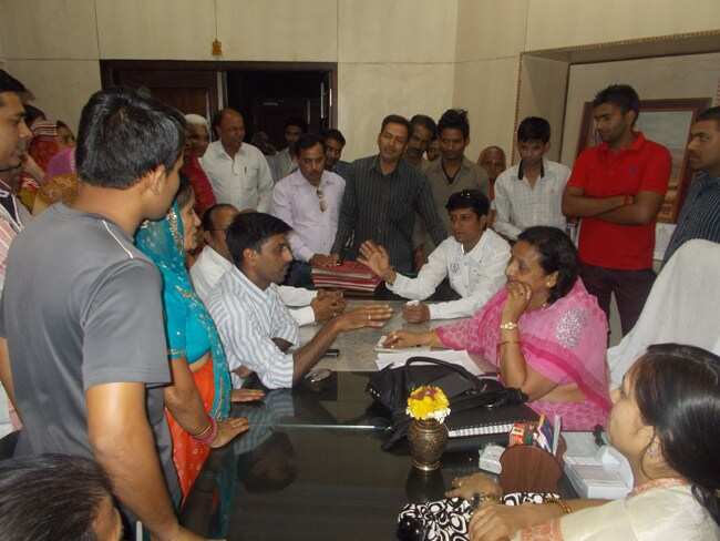 गायरियावास स्थित वार्ड 40 के कई लोग गुरूवार को नगर निगम पहुंचे, जहाँ पर अपनी क्षेत्र में नालियों की समस्या को लेकर निगम महापौर रजनी डांगी का घेराव कर ज्ञापन सोंपा।