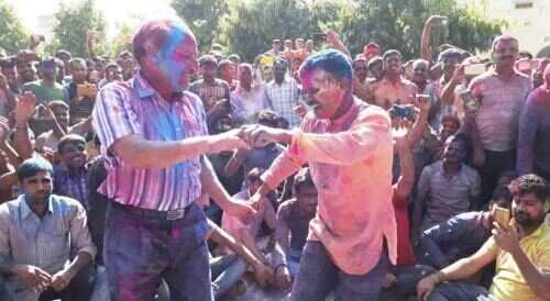 पुलिसकर्मियों ने दूसरे दिन खेली जमकर होली