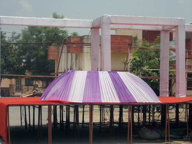 भजन संध्या में नाकोडा भैरव जी के बिराजने के लिए मंच के निर्माण का कार्य भी प्रारम्भ हो चुका है।
