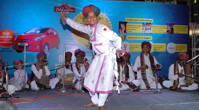 सेलिब्रेशन मॉल में ऑफर भरी शॉपिंग के साथ राजस्थानी गीतों की प्रस्तुती ने मॉल में आने वाले लोगों का उत्साह दुगुना कर दिया। डेजलिंग दिवाली उत्सव के मौके पर आयोजित कार्यक्रमों में अगले रविवार 11 नवबंर को भारत के साल्सा कपल रिचर्ड और स्नेहा अपनी प्रस्तुती देंगे।