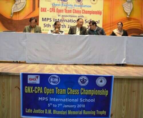 चैस पेरेन्टस एसोसिएशन द्वारा जीएनएक्स सीपीए ओपन टीम प्रतियोगिता का शुभारम्भ एमपीएस इंटरनेशनल मे हुआ । प्रतियोगिता के उद्घाटन समारोह मे माहेश्वरी समाज के अध्यक्ष सत्यनारायण काबरा एवं समाज के महामंत्री संजय माहेश्वरी जी सीपीए के अध्यक्ष राजेन्द्र अरोडा, सचिव पुष्पेन्द्र चौधरी उपाध्यक्ष अमित गुप्ता एवं ललित बराडिया एवं एआरसीए के सचित अशोक भार्गव उपस्थित थे। प्रतियोगिता की सचिव प्रीति भण्डारी ने बताया कि राष्ट्रीय स्तर पर राजस्थान का नाम रोशन करने वाले शातिर यश बाराडिया, शेर सिंह एवं आशी उपाध्याय का सम्मान किया गया।