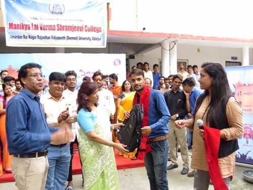 जनार्दनराय नागर राजस्थान विद्याापीठ विवि के संघटक श्रमजीवी महाविद्यालय एवं माईएफएम 94.3, हीरो मोटर कोर्प के संयुक्त तत्वावधान में माई फ्रेश फेस प्रतियोगिता का आयोजन बुधवार को महाविद्यालय के प्रांगण में किया गया। आयेाजन सचिव डाॅ. हेेमेन्द्र चैधरी ने बताया कि इस प्रतियोगिता में एकल गान, समूह गान, एकल नृत्य, समूह नृत्य, काव्य पाठ, रेम्प वाॅक, योगा, राजस्थानी एवं फिल्मी गीतों पर डांस आदि का आयोजन किया गया।
