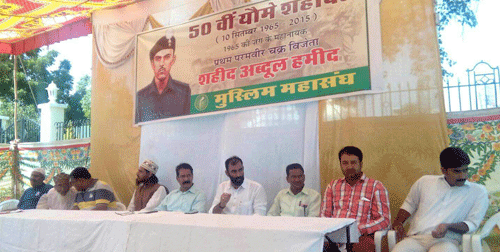 दिनाक 10.9.2015 को टाउन हॉल स्तिथ शहीद स्मारक पर मुस्लिम महासंघ द्वारा 50 वा योमे सहादत प्रथम परमवीर चक्र विजेता शहीद अब्दुल हमीद की याद में मनाया गया।
