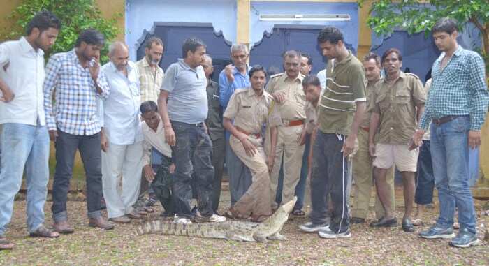 कुएं से 6 फुट का मगरमच्छ निकाला