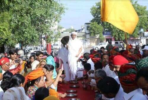 हिरणमगरी समाज अध्यक्ष झमकलाल अखावत ने बताया कि कानपुर से प्रातः 5 बजे रवाना हुई संस्कार यात्रा को लेने शहरवासी प्रातः साढ़े छः बजे ही मादड़ी इन्डस्ट्रीयल एरिया पंहुच गये। बीच मार्ग में हजारों दिगम्बर जैन समाज के महिला पुरूष कहीं माताजी का पाद प्रक्षालन कर रहे थे तो कहीं बीच मार्ग में माताजी एवं संस्कार रथ यात्रा का पुष्पवृष्टि कर स्वागत किया जा रहा था। कुछ स्थानों पर पर तो उनकी आरती उतारी जा रही थी। मानों ऐसा लग रहा था कि वर्षो बाद समाज का कोई मसीहा क्षेत्र में आया है।