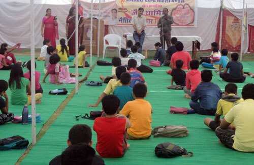 श्री जैनाचार्य देेवन्द्र महिला मण्डल उदयपुर द्वारा भुवाणा रोड़ स्थित देवेन्द्र धाम में आयोजित किये जा रहे 11 दिवसीय धार्मिक नैतिक संस्कार शिविर के दसवें दिन आज आधार फाउण्डेशन के सदस्यों ने शिविरार्थी बच्चों को सडक़ सुरक्षा जीवन रक्षा विषय पर सडक़ सुरक्षा के नियमों के बारें में जानकारी दी।