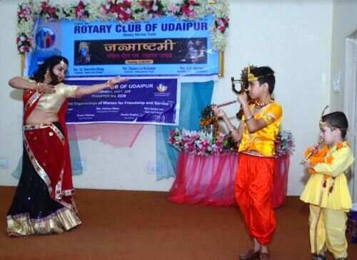 रोटरी क्लब उदयपुर एवं इनरव्हील क्लब के संयुक्त तत्वावधान में रोटरी बजाज भवन में हर्षोल्लास के साथ जन्माष्टमी पर्व मनाया गया। इस अवसर पर पुरूषों ने जहाँ देशभक्ति गीतों की तो महिलाओं ने कृष्ण पर आधारित गीतों पर नृत्य की प्रस्तुतियां दी।