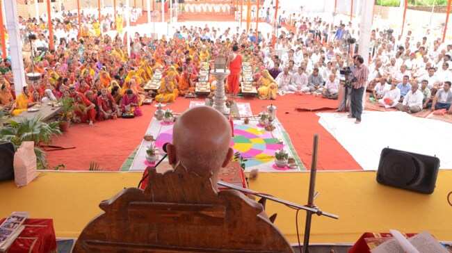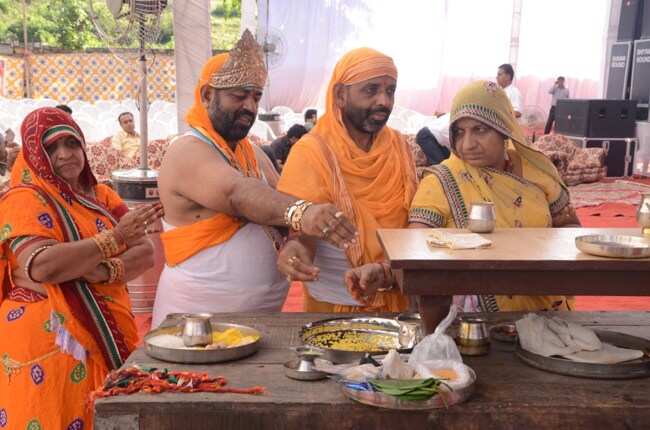 गमेर बाग पर स्वर्णिम शाश्वत् तीर्थ यात्रा के संघपति शांतिलाल वेलावत, विजय कुमार वेलावत परिवार द्वारा भव्य कल्याण मंदिर विधान का आयोजन और सकल दिगम्बर जैन समाज का स्वामी वात्सल्य रखा गया।