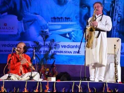 इसके बाद प्रख्यात बांसुरी वादक रोनू मजुमदार ने बांसुरी के कंठ खोले तो उनका अनुभव मुखर हो उठा। जिनके साथ अमेरिका के प्रसिद्ध सेक्सोफोनिस्ट जोर्ज ब्रुक्स ने सेक्सोफोन एवं प्रांशु चतुरलाल ने तबला, दरबुका और ड्रम्स पर संगत की। अपनी प्रस्तुति का आगाज उन्होंने राग यमन कल्याण से किया। यह बंदिश तीन ताल में निबद्ध थी। इस तिकडी ने इस राग की अवतारणा में विविध तानों का समावेश कर खूबसूरत तिहाइयों के साथ सम का दर्शाव किया। कई बार उन्होंने बेदम तिहाइयों के साथ सम नहीं दिखाकर भी प्रभावपूर्ण प्रस्तुति देकर श्रोताओं को मंत्रमुग्ध कर दिया। बांसुरी, सेक्सोफोन और तबले पर जुगलबंदी को आगे बढाते हुए उन्होंने रसिक श्रोताओं के लिए बहुप्रचलित गीत पुरीया धनाश्री,हंसध्वनी,गावति एवं झंझोती का मिश्रण प्रस्तुत किया। यह बंदिश ताल रूपक एवं तीन ताल में निबद्ध थी।