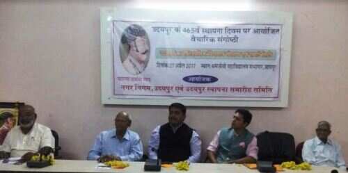 उदयपुर के 465 वे स्थापना दिवस के पांच दिवसीय समारोह के तीसरे दिन श्रमजीवी महाविद्यालय सभागार में वैचारिक संगोष्ठी - उदयपुर का ऐतिहासिक विरासत संरक्षण एवम स्मार्ट सिटी विषय पर आयोजित हुई जिसकी अध्यक्षता प्रो के एस गुप्ता ने की मुख्य अतिथि राजस्थान विद्यापीठ वि. के कुलपति कर्नल प्रो एस एस सारंगदेवोत विशिष्ठ अतिथि भाजपा के उदयपुर शहर अध्यक्ष, दिनेश भट्ट व केप्टन राघव राव सिंह शिवरती ( मेवाड़ ) थे।