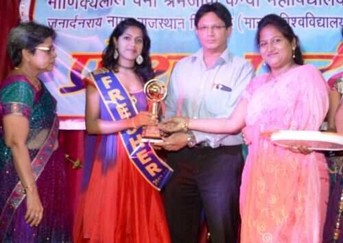 जनार्दन राय नागर राजस्थान विद्यापीठ, विश्वविद्यालय के संघटक कन्या महाविद्यालय में बुधवार को हुई फ्रेशर पार्टी में शिवानी पालीवाल मिस फ्रेशर चुनी गई। प्राचार्य डाॅ. अर्पणा श्रीवास्ताव ने बताया कि फ्रेशर पार्टी में रेम्प वाक, गायन, सामान्य ज्ञान प्रतियोगिता, धरोहर की जानकारी, सवाल जवाब, राजस्थानी एवं पंजाबी डांस पर छात्राओं जममक अपनी प्रस्तुतिया दी। छात्राओं ने कन्याभ्रूण हत्या और बेटी बचाओं पर संवेदनशील नाटक का प्रस्तुतिकरण किया।