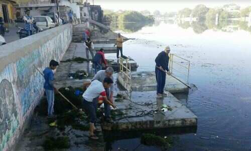पिछोला नयी पुलिया घाट पर झील मित्र संस्थान,झील संरक्षण समिति एवं डॉ मोहन सिंह मेहता मेमोरियल ट्रस्ट के द्वारा आयोजित श्रमदान में बड़ी संख्या में शराब की बोतले, मांस के लोथड़े, घरेलू कचरा, घाट पर उग रही घास, पोलथिन,पूजन सामग्री, नारियल,जलीय खरपतवार आदि निकाल कर सफाई की गई। निकाले गए कचरे को निगम के दल ने ट्रेक्टर में भर हटाया।