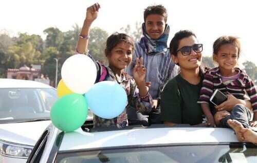 झुग्गी झोपड़ी के बच्चों ने मंहगी कारों में बैठकर किया शहर का सफर