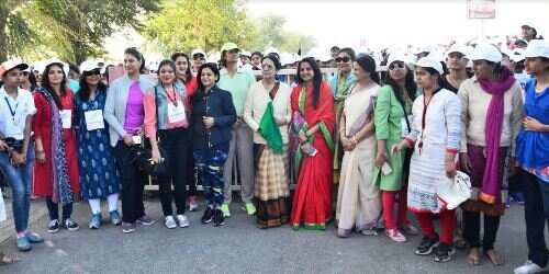 शहर की फतहसागर की पाल को मानो रविवार की खुशनुमा सुबह का ही इंतजार था। हवा के ठंडे झोंकों और पानी में आती-जाती लहरों के बीच पाल पर नारी शक्ति का संदेश देने इकट्ठा हुई 1500 से अधिक महिलाओं व युवतियों ने इतिहास रच दिया। मौका था महिलाओं की ओर से महिलाओं के लिए आयोजित ‘चिक्स कनेक्ट पावर रन मैराथन’ का। महिलाओं में जोश इतना था कि सुबह 8 बजे ही फतहसागर पाल का एक छोर नारी शक्ति के नारों से गूंज उठा। सफेद कैप में सजी महिलाओं ने ‘भारत माता की जय,’ ‘वंदे मातरम्’ सहित अन्य