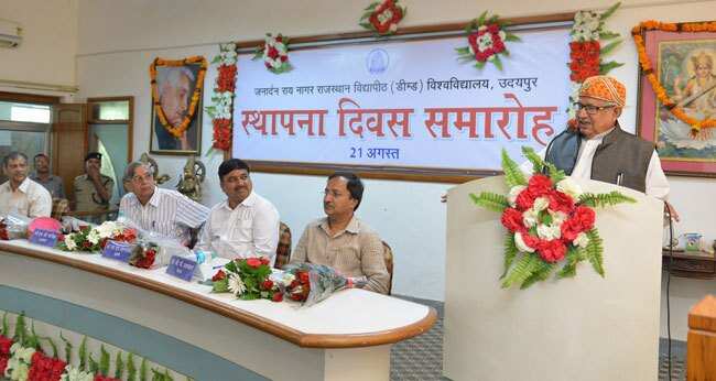 उन्होनें इस जनजातीय बाहुल्य क्षेत्र में राजस्थान विद्यापीठ के कार्यो की तथा पं. जनार्दन राय नागर के योगदान की सराहना की। अवसर था जनार्दनराय नागर राजस्थान विद्यापीठ विश्वविद्यालय के 78 वे स्थापना दिवस का।