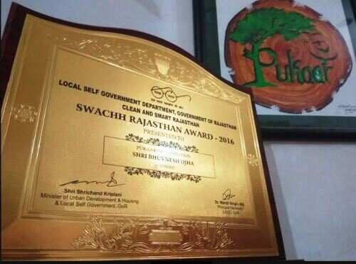 शहर के सार्वजनिक पार्को को स्वच्छ और हरा भरा बनाने हेतु कार्यरत युवा संगठन ‘पुकार’ के 21 वर्षीय संस्थापक भुवनेश ओझा को राजस्थान सरकार की ऒर से स्वच्छता क्षेत्र में उत्कृष्ट कार्य के लिए स्वच्छ राजस्थान-2016 के पुरस्कार से नवाज़ा गया है।