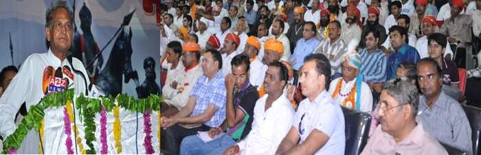 मुख्यमंत्री मंगलवार को उदयपुर के सुखाडिया रंगमंच पर आयोजित महाराणा प्रताप की 473वीं जयन्ति के अवसर पर आयोजित समारोह में मुख्य अतिथि पद से उद्बोधन दे रहे थे। उन्होंने कहा कि मेवाड की धरती वीरों की धरती रही है, इस धरा ने कई महापुरुषों के जन्म एवं उनके दिये बलिदान आज भी चिरस्मरणीय है। उन्होंने महाराणा प्रताप का स्मरण करते हुए कहा कि जो महापुरुष समाज और देश के लिए कार्य करते हैं उन्हे सीमाओं में नही बांधा जा सकता।