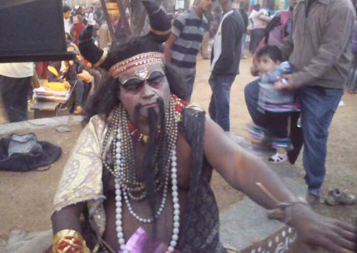 बहरूपिये – सबसे पहले हमने बात की महाराष्ट्र अमरपुर से आए हुए सुभाष से जिन्होंने कुंती पुत्र भीम का रूप बना रखा था। वो किसी कला संसथान से नहीं जुड़े थे, बल्कि वे अपने दम पर रोज़ काम करते है उनका कहना था की इस काम से उनकी रोज़ी-रोटी भी बड़ी मुश्किल से चलती है। कभी काम मिलता कभी नही, कभी 100 कम लेते हा कभी 50 और कभी कुछ नही। वह अपने बच्चो को पढ़ना चाहते है उन्हें अपनी कला से नही जोड़ना चाहते है परन्तु वह शिल्पग्राम उत्सव में आकर खुश है व संतुष्ट है।