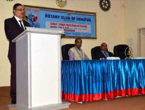 मोहनलाल सुखाड़िया विश्वविद्यालय के सीसीएमएस काॅलेज के डीन प्रो. जी. सोरल ने कहा कि गत 1 फरवरी को केन्द्रीय वित मंत्री अरूण जेटली द्वारा पेश किया गया वर्ष 2018-19 का बजट इस वर्ष अर्थव्यवस्था पर काफी प्रभाव डालेगा। वे रोटरी क्लब उदयपुर द्वारा रोटरी बजाज भवन में आयोजित बजट इम्प्लीकेशन आॅन इकोनोमी विषयक वार्ता में बोल रहे थे।
