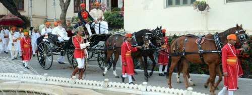 कई मीटर लंबी इस भव्य सवारी में पैलेस के अश्व आकर्षक वस्त्र आदि व आभूषण, मसेहस, घूमची हालरिया व हालरा पहने चल रहे थे। इस नौबत री असवारी में शहर के आमंत्रित राव उमराव, जागीरदार, ठिकानेदार परंपरागत वेशभूषा पहने शामिल थे। पूरी नौबती री आसवारी के मुख्य आकर्षण अरविंद सिंह मेवाड़ परंपरागत वस्त्र पहने हुए 1905-रॉयल लैंडयू इन सिक्स हैण्ड गाड़ी पर सवार थे।