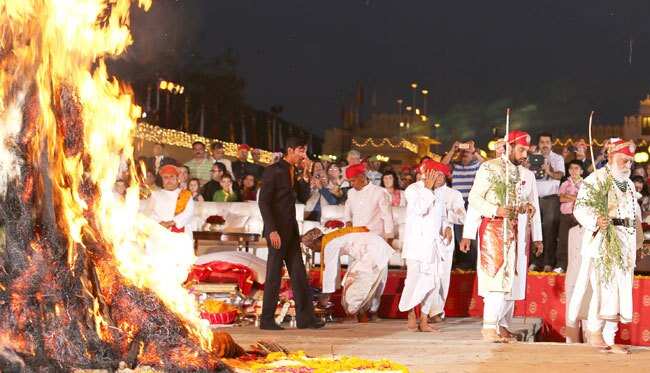 महाराणा मेवाड़ चैरिटेबल फाउण्डेशन, उदयपुर द्वारा आयोजित चार दिवसीय विश्व जीवंत विरासत महोत्सव 2014 के अंतिम दिन रविवार को पैलेस के माणक चौक में होली दीपन किया गया।