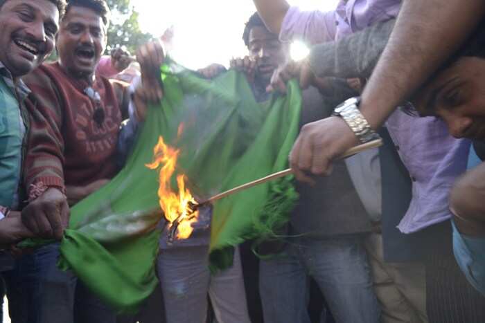 शहीद जवानों को श्रधांजलि दी, पाकिस्तान का झंडा फूँका