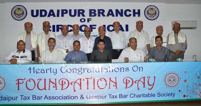 उदयपुर टेक्स बार एसोसिएशन और उदयपुर टेक्स बार चेरीटेबल सोसायटी के संयुक्त तत्वावधान में शाम सेक्टर 14 स्थित आई.सी.ए.आई. भवन में सम्मान समारोह आयोजित किया गया जिसमें एसोसिएशन के पूर्व अध्यक्षों का सम्मान मुख्य अतिथि उदयपुर ग्रामीण विधायक फुल सिंह मीणा के आतिथ्य में किया गया। सम्मान में माला, पगड़ी पहना व सम्मान पत्र भेंट किया गया।