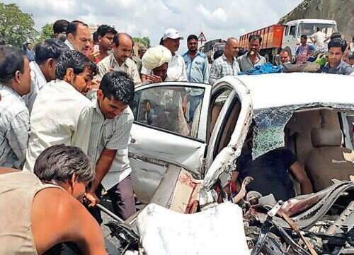 बेकाबू कार ट्रक से भिड़ी, दो मरे, चार घायल